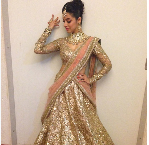 12. This sari of Divya was designed by ace designer Sabyasachi Mukerjee and she got rave reviews for her selection of fashionable clothes after wearing this one.