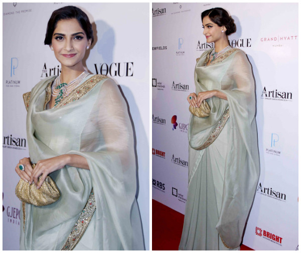 5. For one of the events of Vogue, Sonam wore gorgeous green ensemble by Anamika Khanna.