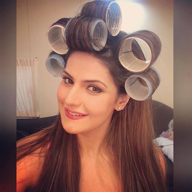 3. Zarine is very active on social media platforms like Instagram. Here’s her another cute picture while she is getting her hair do ready.