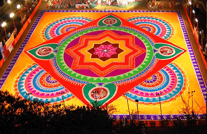 7. Rangoli- an auspicious design is created in front of door step. These rangolis are evolving and getting bigger every year. Here’s the picture of a humongous rangoli done by artists. Huge rangolis covering grounds are common nowadays. 1 2 3 4 5 6 7 8 9 Facebook Twitter Google+ Linkedin Pinterest Article Tags: Candid photos of Diwali · Diwali · Diwali And Festival of lights · Featured · Happy Diwali · Photos of Diwali Article Categories: Specials