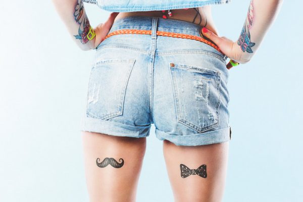 We are so captivated by this tattoo design. These tattoos are bold and the delicate lines make these cheeky polka dotted bow appear extravagant. Then there is the quirky moustache tattoo that looks perfect too.
