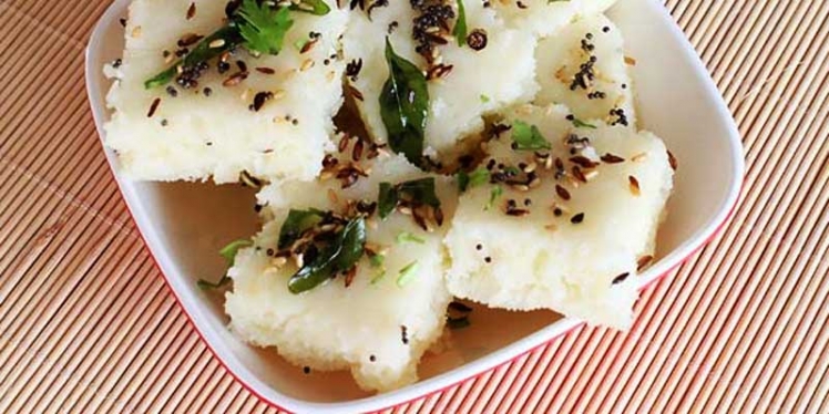 Khatta Dhokla is a Gujrati Snack. It is prepared from fermented and steamed rice, close to south Indian dish Idli. It is light, spongy, bit sour, and pampered with mustard and cumin seeds and lightly spiced with sesame seeds, green chillies and and ginger. Generally served with sweet and hot chutney.