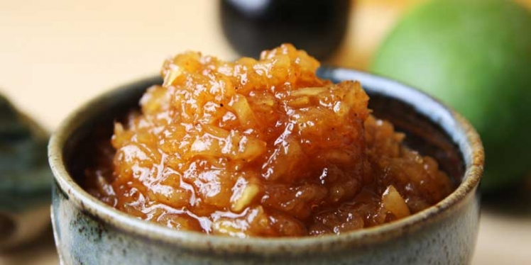 Sweet Mango Pickle is very special of all the pickles. Under ripe and raw mangoes are diced into pieces and simmered in sugar syrup with certain spices such as garlic, cloves, bay leaf, peppercorn, fennel seeds, and red chilli poweder. It is kept in the sun for about 20 to 30 days to cook. Generally served with meal.