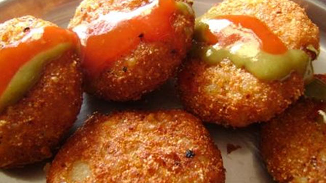 - Heat oil, enough for deep frying, in a skillet. Make roundels out of the mix. Deep fry till they turn reddish brown. Remove from heat and serve hot with chutney or ketchup.