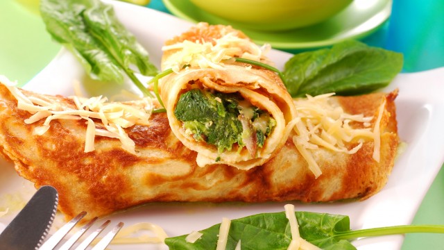 Your regular pancake with a twist of sauted spinach and melted cheese.