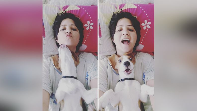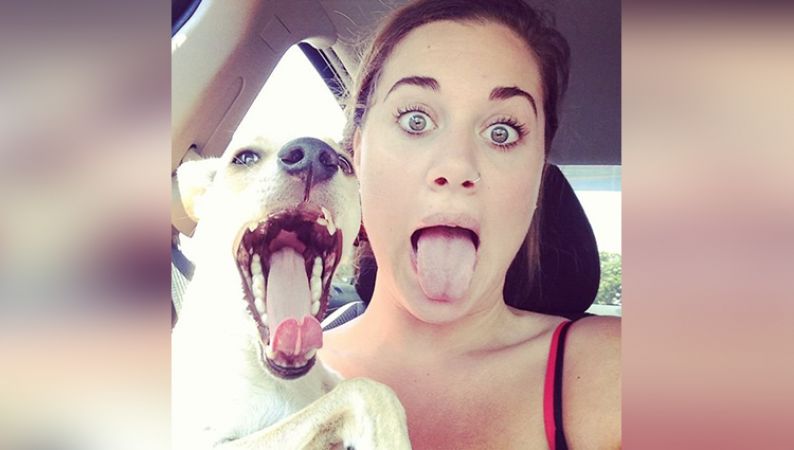 मोहतरमा को लगता था कि डॉगी इनकी तरह पोज़ नहीं दे सकता, लेकिन जब सेल्फी क्लिक हुई तो उनसे बेहतर पोज़ कुत्ते का ही आया.
