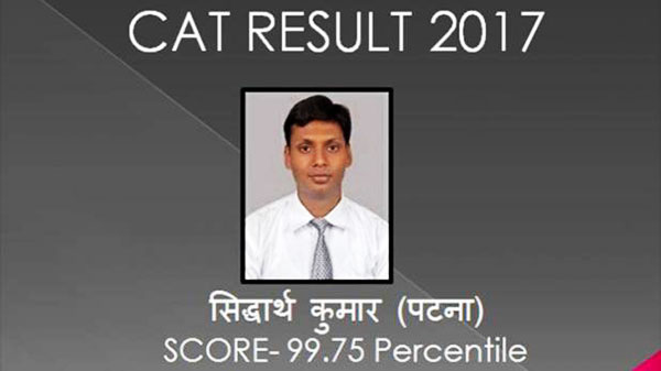 वैसे आपको बता दे कॉमन एडमिशन टेस्ट में दूसरा स्थान सिद्धार्थ कमार ने 99.75 के साथ हासिल किया है । सिद्धार्थ पटना के रहने वाले है । वो इस परीक्षा में दूसरी बार बैठे हैं । क्योंकि पिछली बार उनकी 94 प्रतिशत आए थे जिसे वो खुश नहीं थे।