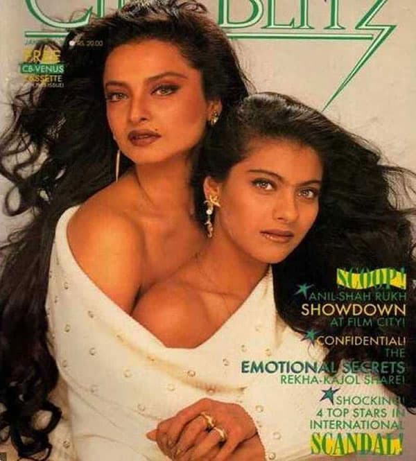 काजोल और रेखा का ये पोज़ देखकर आपको हैरानी होगी. आज की हीरोइन भी इस तरह का कवर पोज़ नहीं दी हैं. उस समय दोनों का एक ही टी शर्ट में होना बहुत ही बोल्ड स्टेप था. जैसे ही ये फोटो लोगों के सामने आयी लोगों ने हैरानी व्यक्त की.