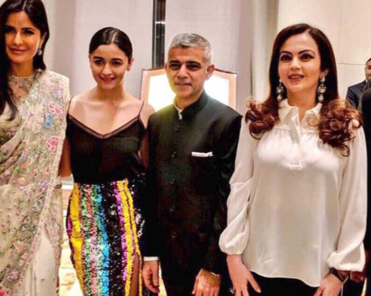 मशहूर उद्योगपति मुकेश अंबानी ने हाल ही में लंदन के मेयर सादिक खान के लिए अपने घर में एक ग्रैंड पार्टी का आयोजन किया था जिसमें शाहरुख खान, अमिताभ बच्चन, कैटरीना कैफ, दीपिका पादुकोण और आलिया भट्ट जैसे कई मशहूर सितारों ने शिरकत की.