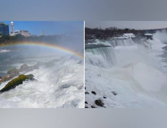 दुनिया भर में ठण्ड का समय है. ऐसे में बर्फ का पिघलना लाज़मी है. कडाके की इस ठंड ने लोगों को घरों से निकलना मुश्किल कर दिया है. नियाग्रा फॉल्‍स यूं तो बेहद खूबसूरत दिखाई देता है लेकिन इस समय दुनिया भर में इसकी चर्चा इसलिए हो रही है क्‍योंकि ये जम गया है.