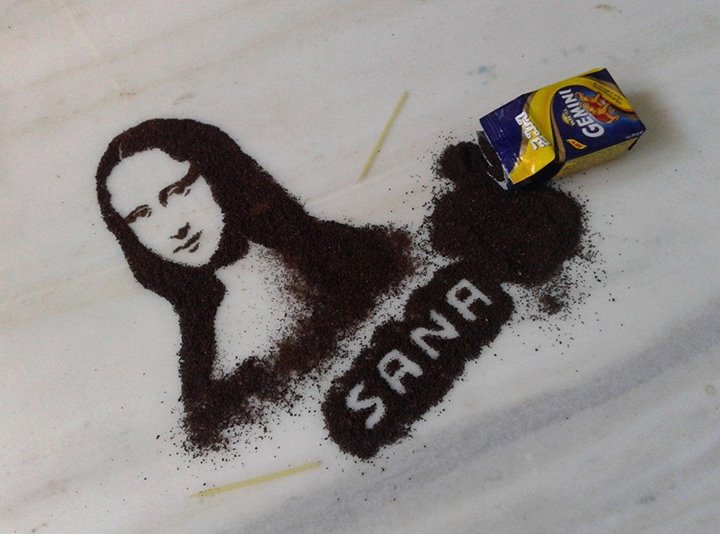 विन्ची की मोनालिसा से कुछ कम नहीं ये मोनालिसा भी. इसको बनाया गया है कॉफ़ी पाउडर से. 1 2 3 4 5 6 7 8 Facebook Twitter Google+ Linkedin Pinterest Article Tags: art · Creativity · Featured · Sana Amit Kumar · Shadow Art · कला · गणपति · परछाई Article Categories: विशेष