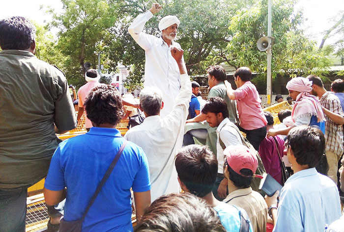 सुबह से ही संत लोग गौ-हत्या बंदी के लिए जुटना शुरू हो गये थे.