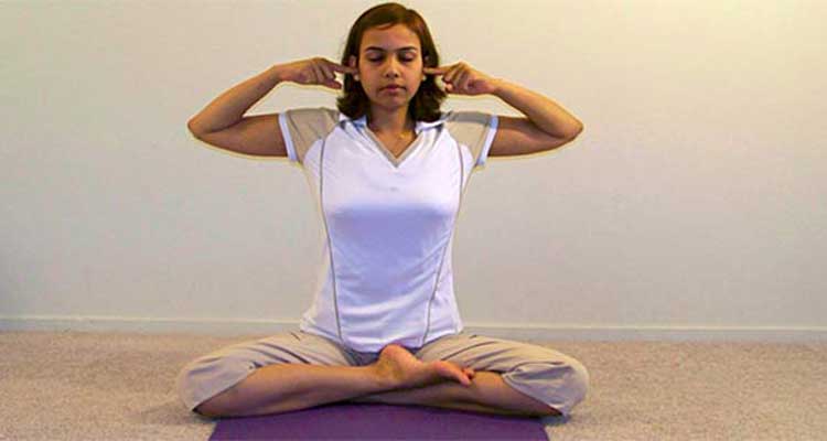 अब मेरुदंड को बिलकुल सीधा और दोनों हाथों को बगल में अपने कंधो के समांतर फैलाए. इसके बाद अपने हाथों को कोहनियो से मोड़ते हुए हाथ को कानों के समीप ले जाएं और दोनों हाथों के अंगूठों से दोनों कानों को बंद कर लें.