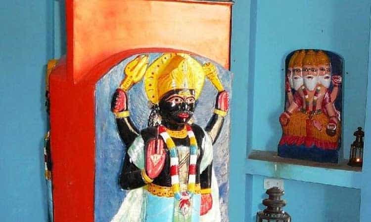 इस मंदिर में शनि देव की तीन मूर्तियों के साथ ब्रह्मा की मूर्ति ऐसे रखी गई है जिससे लगता है कि ब्रह्मा सीधे शनि देव को देख रहे हैं. इन मूर्तियों के साथ हनुमान जी की भी एक मूर्ति स्थापित की गई है.