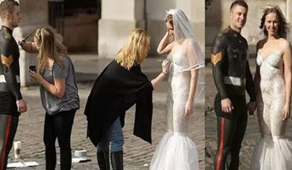 जी हां, शादी में शरीक हुए लोगों को ये पता ही नहीं चल पाया कि दूल्हा–दुल्हन ने कपड़े नहीं पहने हैं।