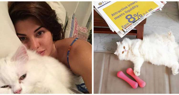 जैकलीन फर्नांडिज की पालतू बिल्ली उन्हें बहुत पसंद है जैकलीन अक्सर अपनी इस प्यारी सी बिल्ली को देखकर कहती हैं जैसे घटाओं के बादलों को उसने अपनी बाहों में भर लिया हो.