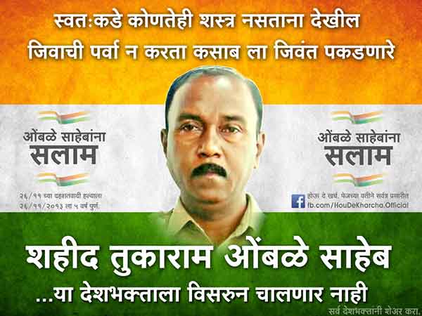 तुकाराम ओम्ब्ले वे व्यक्ति हैं जिन्होंने मुंबई में हुए 26/11 के हमलावरों में से एक, अजमल कसाब को ज़िंदा धर दबोचा. यह बहुत दुःख की बात है कि वे कसाब से हुई आपसी मुतभेड में मारे गए, लेकिन एक बात ध्यान में रखिए, वे देश के लिए शहीद हुए!