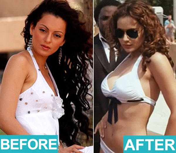 बॉलीवुड की डस्की एक्ट्रेस बिपाशा बसु ने भी अपनी खूबसूरती में चार चांद लगाने के लिए ब्रेस्ट इंप्लांट का सहारा लिया हुआ है. साथ ही अपने फिगर को और सख्त करने के लिए बिप्स ने Botox और Nose job का भी सहारा लिया है.