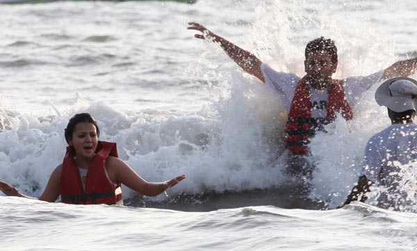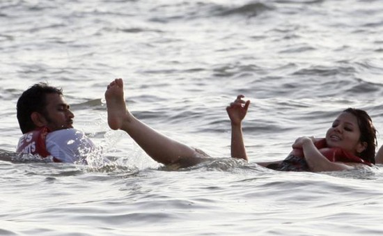 2. इंडियन टीम के कप्तान महेंद्र सिंह धोनी अपनी धर्म पत्नी साक्षी के साथ समुंद्री मस्ती करते हुए.
