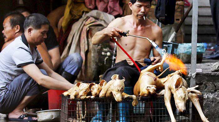 9. कई बार कुत्तों को यहाँ जिन्दा ही गर्म पानी में डाल दिया जाता है और उसके बाद भूनकर इनको खाने लायक बनाया जाता है.