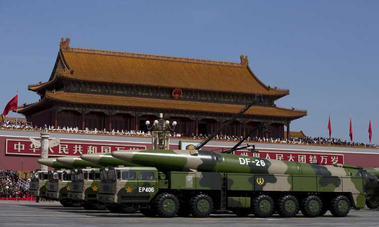चीन का घातक हथियार डीएफ-26 मिसाइल बीजिंग का सबसे ताकतवर हथियार है और अमेरिका के कई शहर इसके दायरे में आते हैं. इस मिसाइल की मारक क्षमता 5,500 किलोमीटर है. खबरों के अनुसार यह माना जाता रहा है कि इस मिसाइल को प्रशांत महासागर के क्षेत्र में तैनात करके चीन अपना दबदबा कायम करना चाहता है.