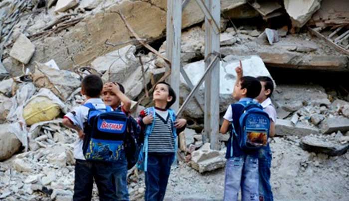 5 – इन बच्चों की नजरे अभी आसमान की ओर गड़ी है न जाने कब रूस या सीरिया के युद्धक विमानों स्कूल परिसर बम गिराकर चले जाए. 1 2 3 4 5 6 7 8 9 10 Facebook Twitter Google+ Linkedin Pinterest Article Tags: Featured · सीरिया के स्कूली बच्चों की तसवीरें Article Categories: विशेष