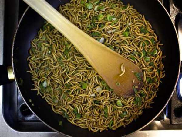 गुबरैले का लार्वा (Mealworm) गुबरैले की इल्ली इकलौता ऐसा कीट है जो वेस्टर्न देशों में खाया जाता है. नीदरलैंड में इन्हें इंसानों और जानवरों को खाने के लिए ही विकसित किया जाता है. नीदरलैंड में मीलवॉर्म को स्नैक्स के अलावा बर्गर और चाउमीन में डालकर सर्व किया जाता है. इनमें कॉपर, सोडियम, पोटेशियम, आयरन, जिंक आदि तत्व पाए जाते हैं.