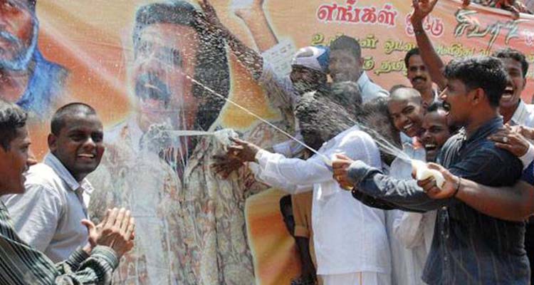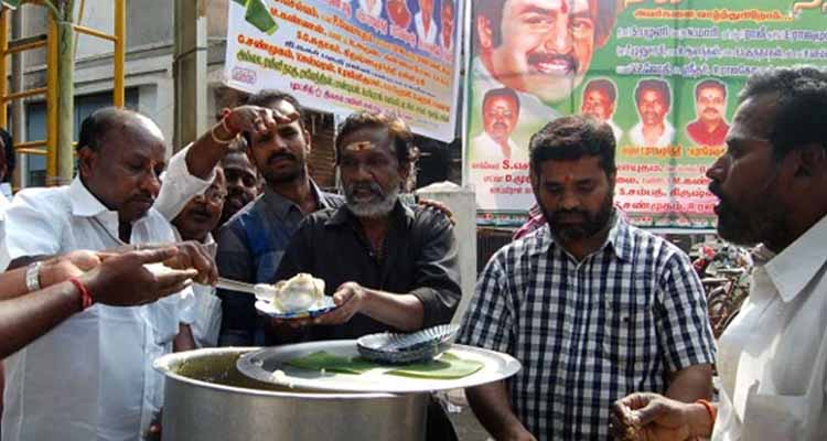 4 – सुपरस्टार रजनीकांत के पोस्टर पर दूध चढाते हुए रजनीकांत के फैन्स.