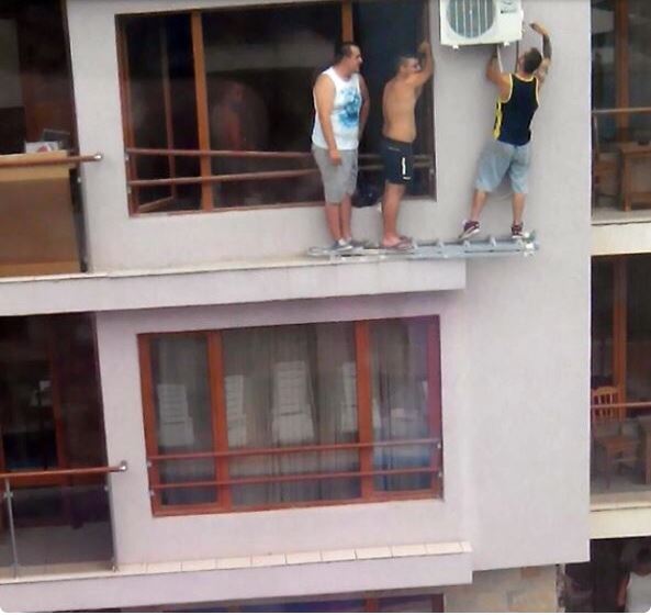 ६ – इस तरह का रिस्की काम मर्द ही कर सकते हैं, देख लीजिए एसी ठीक करने के लिए जनाब कहां खड़े हैं.