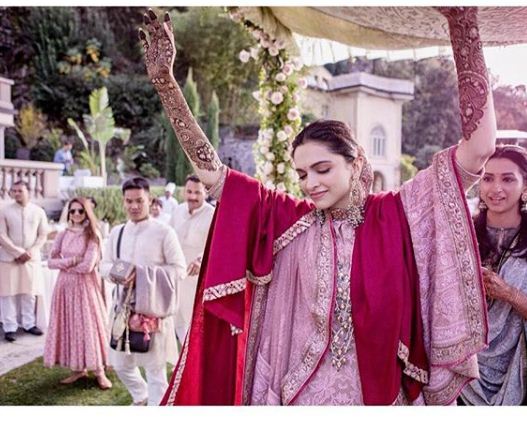 दीपिका और रणवीर की शादी पहले कोंकणी रस्म से हुई फिर सिंधी रिवाज से दोनों ने शादी की. दीपिका का लुक एकदम शाही था. दीपिका को अब तक की बॉलीवुड की सबसे खूबसूरद दुल्हन कहें तो गलत नहीं होगा.