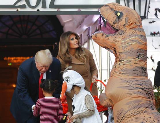 इस पूरे कार्यक्रम का आयोजन कहीं और नहीं बल्कि राष्ट्रपति निवास में यानी वाइट हाउस में किया गया. पूरे लॉन में भूतों वाले गाने बज रहे थे. फॉग मशीनें लगाई गई थीं. व्हाइट हाउस में चारों ओर जालों सहित काली मकड़ियां लटक रही थीं. ट्रंप और उनकी पत्नी मेलेनिया ने हैलोवीन भोज में डायनोसोर सहित तमाम तरह के जानवरों, कंकालों, भूतों, पिशाचों का स्वागत किया. इन बच्चों को देखकर सच में लग रहा था कि भूत आ गए हैं. कुछ बच्चे भयानक जानवर बने थे.