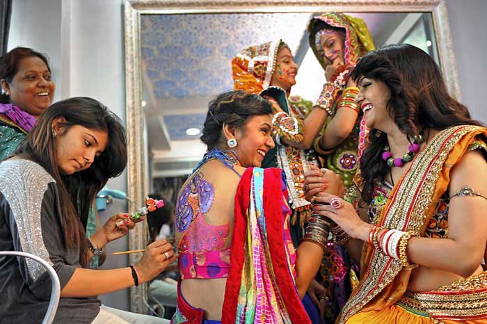1. गरबे में गुजरती महिलाओं की खूबसूरती को इनके शरीर पर बनने वाली पेंटिंग्स चार-चाँद लगाती हैं. पहली नजर में ही इस पेंटिंग के आप दीवाने हो जाओगे.