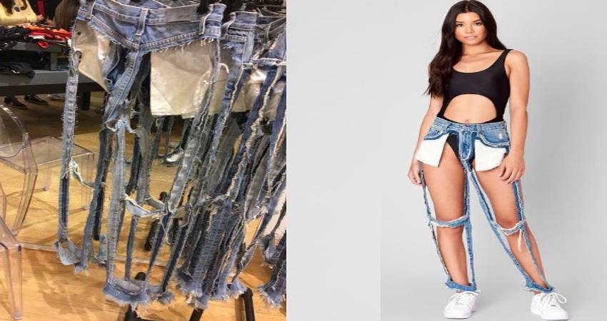 इस ट्रेंडिग अजीब जीन्स में सिर्फ जेब और कुछ धागों के अलावा कुछ भी नही है. यह एक्सट्रीम कट आउट जींस सिर्फ आगे से ही नहीं बल्कि पीछे से भी इतनी ही फटी हुई है. जहां इसकी बनावट पर लोग बात कर रहे हैं वहीं इस जींस की कीमत सुन कर भी अचंभित हैं. अगर आप सोच रहे होंगे की इसकी कीमत कम होगी तो हम आपको बता दें कि इसकी कीमत हज़ारों में है.