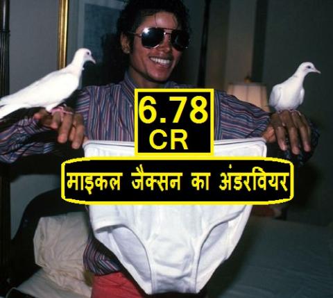 1. दुनिया के सबसे बड़े पॉप किंग स्टार माइकल जैक्सन के गंदे अंडरवियर को 1 मिलियन डॉलर यानी करीब 6.80 करोड़ रुपयों की भारी राशि में उनके एक प्रशंसक फैन ने खरीदा था.