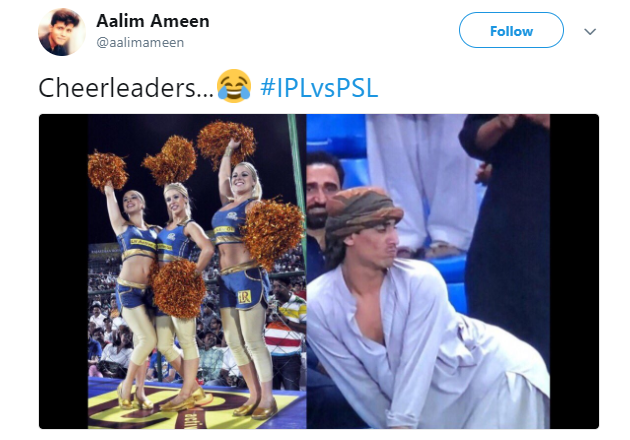 इस तस्वीर में आप देख सकते हैं की किस तरह एक तरफ आईपीएल की चीयरलीडर्स का कम्पेरीजनपीएसएल के चीयरलीडर्स के साथ किया है.