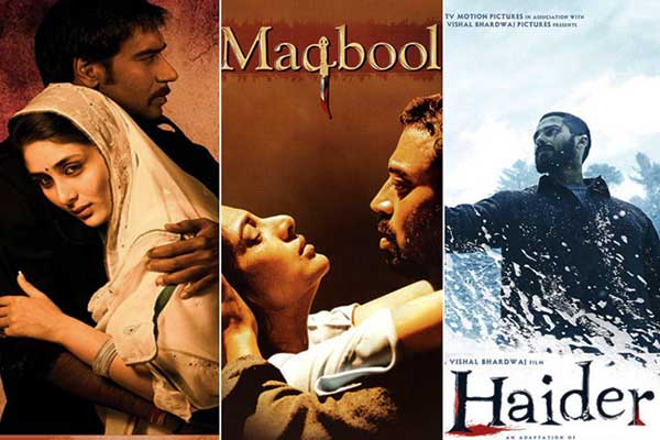 फिल्म ओमकारा ओथेलो, फ़िल्म मकबूल मैकबेथ, हैदर हैमलेट पर आधारित है. उनकी तीनों ही फ़िल्मों को अवार्ड्स के साथ सराहना मिली है.