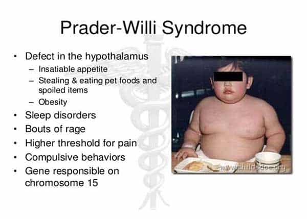 यह आनुवंशिक विकार है। जिसमें रोगी की शारीरिक संरचना खराब होती है। शरीर की संरचना का खराब होने का कारण रोगी को सामान्य से अधिक भूख लगना। जिससे रोगी मोटापा की समस्या से परेशान रहता है।