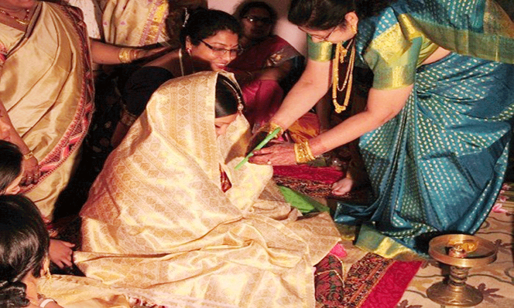 पहले पीरियड के दौरान कर्नाटक में घर की औरतें लड़की की आरती उतारती हैं और गाने गाती हैं। इसके बाद लड़की को तिल और गुड़ से बनी डिश चिगली उंडे खिलाई जाती है। कहते हैं कि इसे खाने से खून का बहाव बिना किसी रुकावट के होता है।