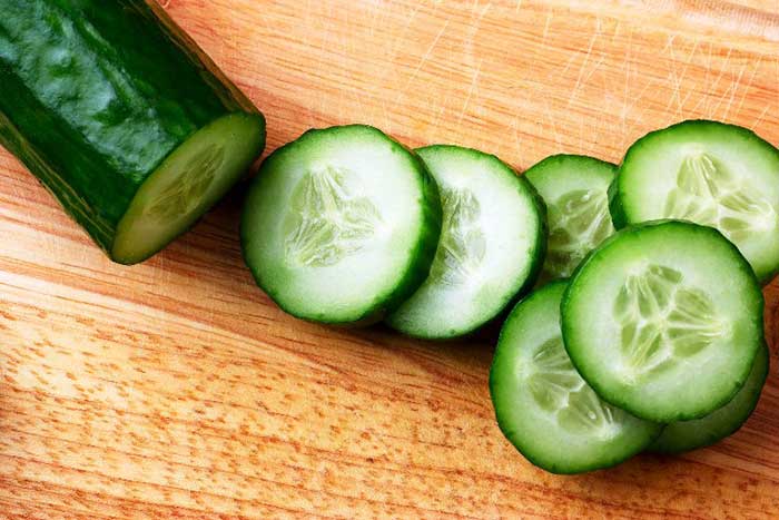 इसमें पानी की मात्रा अधिक होती है, जिससे स्किन हाइड्रेट रहती है, और चेहरे का ग्लो बढ़ता हैं। रोज खीरा खाएं या इसका जूस पिए।