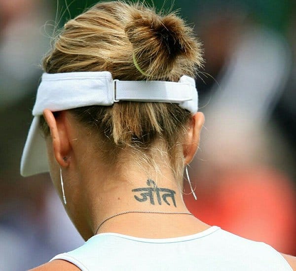 दुनिया की सबसे बेहतरीन टेनिस सनसनी मारिया शारापोवा भी उन विदेशी सेलेब्रिटी में आतीं हैं जिन्हें हिंदी से बेहद लगाव है। शारापावो ने अपनी गर्दन पर हिंदी में जीत लिखवा रखा है। आपको बता दें कि शारापोवा को दुनिया की सबसे खूबसूरत टेनिस प्लेयर भी कहा जाता है। हालांकि एक बार शारापोवा ने सचिन तेंदुलकर को पहचानने से इनकार कर दिया था। जिसके बाद दुनियाभर में उनकी फजीहत हुई थी।