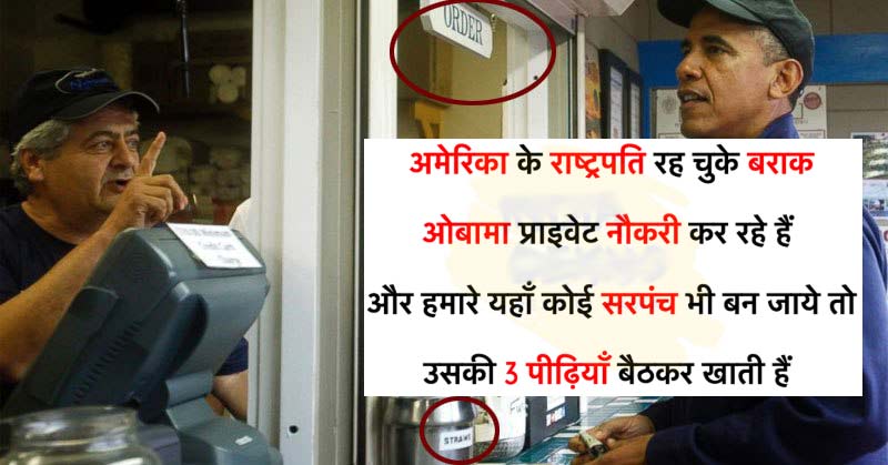 अमेरिका के राष्ट्रपति बराक ओबामा प्राइवेट नौकरी कर रहे हैं और हमारे यहां कोई सरपंच भी बन जाए तो उसकी शान इतनी बढ़ जाती है कि तीन पीढियां तक बैठकर खाती हैं।