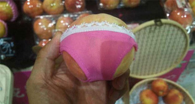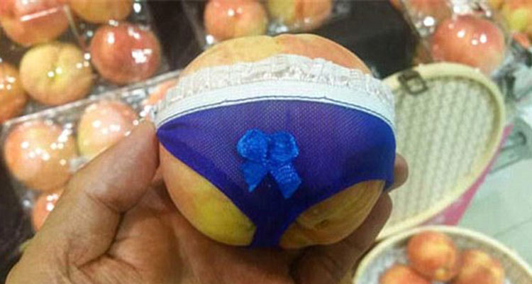 फलों को बेचने का एक अनोखा तरीका – पैंटी पहने हुए फल