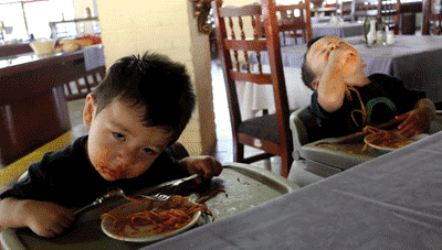 मैगी में लीड ही नहीं लगता है मम्मी ने नींद की दवा भी मिला दी या फिर खाना ही इतना बोरियत भरा है कि इन जनाब को नींद के लटके आने लगे
