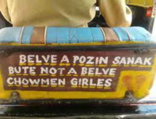 ऑटो के पीछे लिखी लाइने – कोई भी भाषा अगर आपको सही तरह से आती है तो बढ़िया है लेकिन अगर नहीं आती फिर भी आप उसके बोलने या लिखने की कोशिश करते हैं तो क्या हो सकता है, आज हम आपके लिए जो फोटोज़ लेकर आए हैं वो साफतौर पर बता देंगी क्योकि इन फोटोज़ में कुछ पर इस प्रकार की अंग्रेज़ी लिखी है जिसे पढ़ने और समझने के लिए आपको दोबारा से पढ़ाई करनी पड़ सकती है।