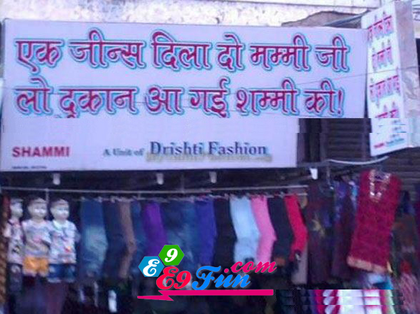 अब इतने प्यार से कोई बच्चा बोलेगा तो क्या आप उसका एक जीन्स नहीं दिलाओगे जी वो भी शम्मी जी की दूकान से कितना क्यूट है ना ये साइनबोर्ड :p 1 2 3 4 5 6 7 8 9 10 Facebook Twitter Google+ Linkedin Pinterest Article Tags: Featured · Funny Ad · Funny Hoardings · Funny Indian Sign Board · Indian Funny Hoardings · मज़ेदार साइनबोर्ड · मज़ेदार होर्डिंग · रोचक Article Categories: ह्यूमर