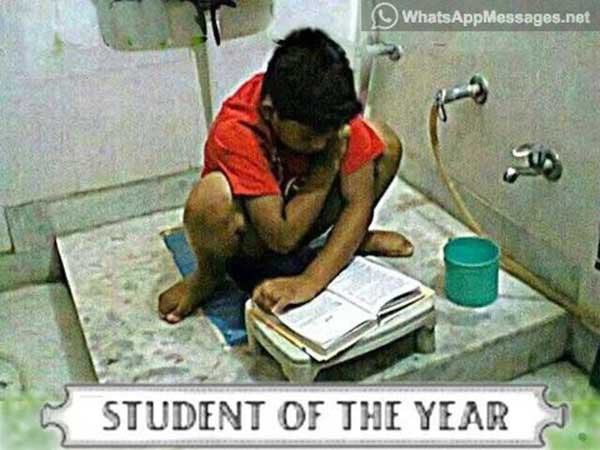 ९ – मतलब हगते हुए भी किताब साथ में. इस बच्चे को देख कर लगता है कि इस साल के सीबीएससी बोर्ड में यही टॉप करेगा. इस बच्चे से हमें कुछ सीखना चाहिए कि किसी चीज को पाना हो तो उसे कही पर भी ले जाना ना छोडे.