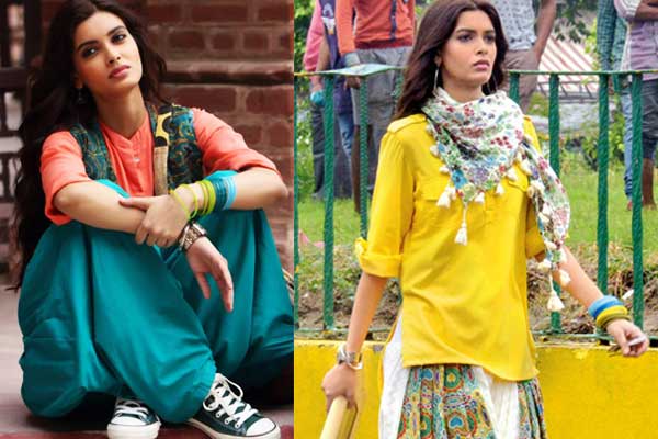 1) फिल्म हैप्पी भाग जाएगी का पहला पोस्टर रीलिज हो गया है इसमें वो एथनिक लुक में नजर आ रही है. लंबे बालों, हाथ में चुड़िया पहने पीच रंग की कुर्ती और ब्लू सलवार के साथ डायना एकदम सिंपल लड़की लग रही है. इस फ़िल्म की दूसरी तस्वीर में वो यलो कुर्ती और पटियाला स्टाईल सलवार में नजर आ रही है. इस फ़िल्म की ये दो तस्वीर उनकी गर्ल नेक्सट डोर की इमेज को साकार कर रही है.