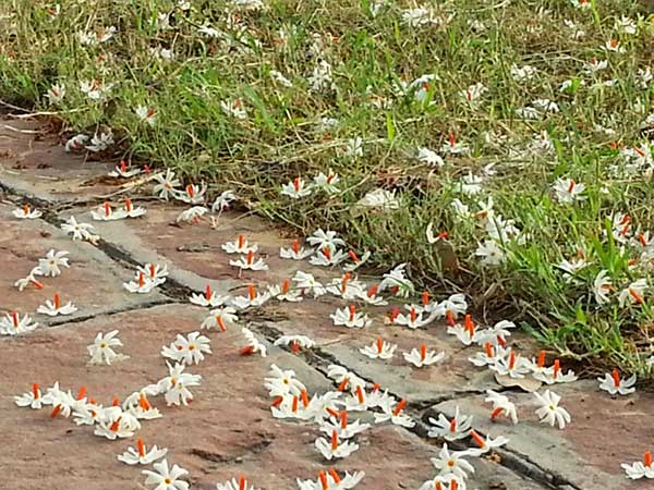 किसी मूर्ति पर चढ़े फूलों का अचानक गिरते हुए देखना या रास्ते में चलते हुए बिना हवा के पेड़ से फूलों का सर पर या शरीर के अंग को छूते हुए गिरना किसी शुभ संदेश या अच्छे कार्य का सूचक माना जाता है.