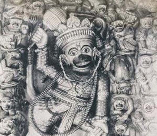 इस रूप में उनके पूँछ नहीं थी. उनके हाथ में राम नमी मुद्रा थी और दुसरे हाथ में लड्डुओं को थाल. हनुमान ने महिलाओं जैसे लाल वस्त्र पहने थे और आभूषण और श्रृंगार से खुद को सजा रखा था. हनुमान का ये रूप देखकर राजा आश्चर्यचकित हो गए.