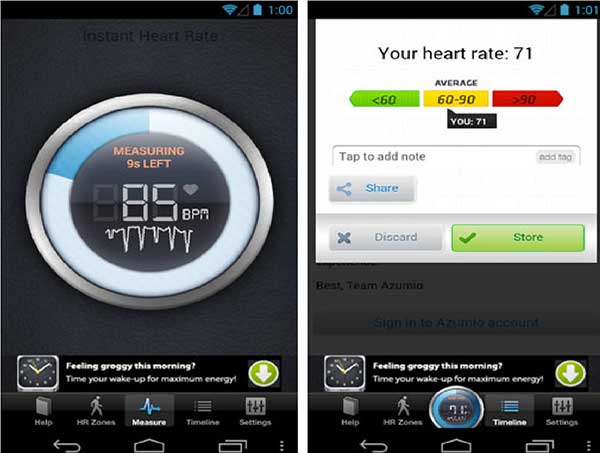 आमतौर पर जब आप वर्कआउट या कार्डियो कर रहे होते हैं तो आपकी हार्ट रेट अलग-अलग होते हैं. यह एप आपके हार्ट रेट को ट्रैक करता है. यह पल्स मॉनिटरिंग से लेकर कई तरह के एप्लिकेशन आपको उपलब्ध कराता है. जो कि एक कैमरा सिस्टम के जरिए ट्रैक करता है. यह एप आपको बताता है कि आपने फैट-बर्निंग और कार्डियों के लक्ष्यों के हासिल किया है कि नहीं. इस एप का प्रो-वर्जन 2.99 डॉलर है.